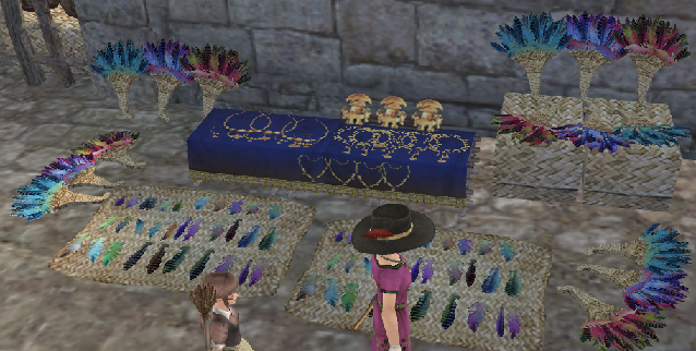 羽飾りなどの装飾品が並べてあったり。